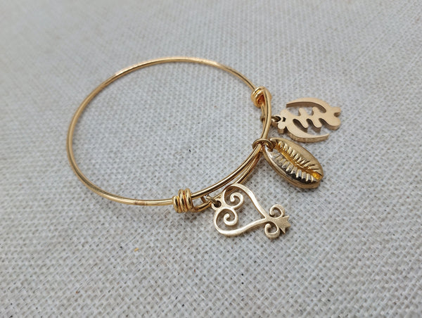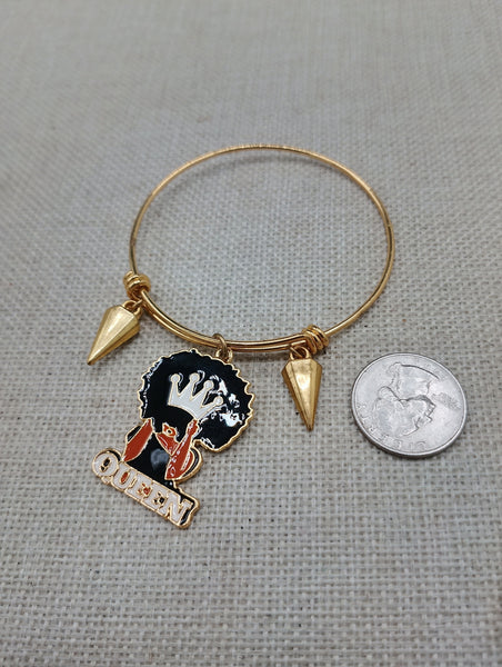 Elevate your jewelry collection with this Black Women Bangle Charm Bracelet Queen Jewelry Set. Made of high-quality stainless steel, these two bangles feature intricate metal and African-inspired charms. Measuring at 7.5 inches, these bracelets make for a great gift for any occasion. Contact us with any inquiries.