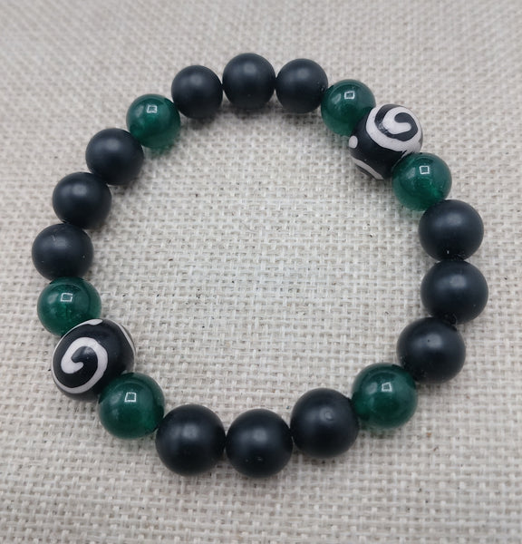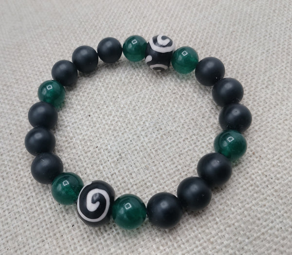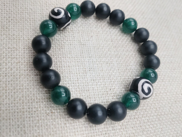Bracelet Jade Green Black Beaded Jewelry Ethnic Stretch Handmade Statement Gift