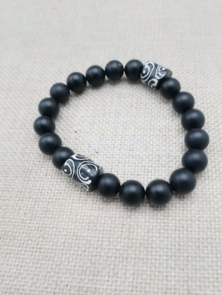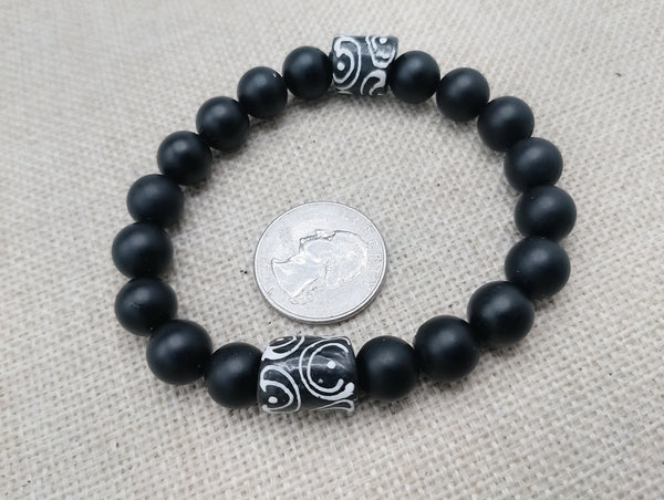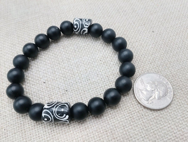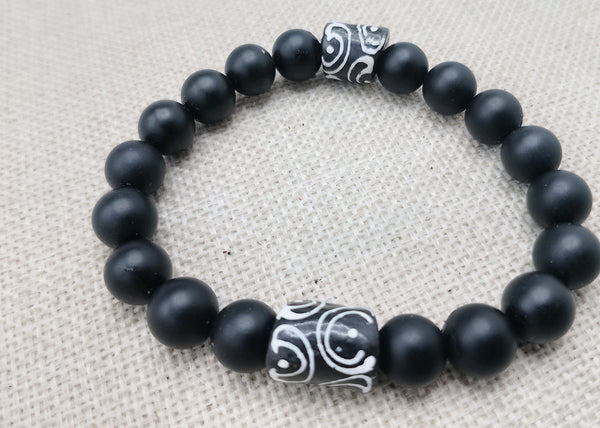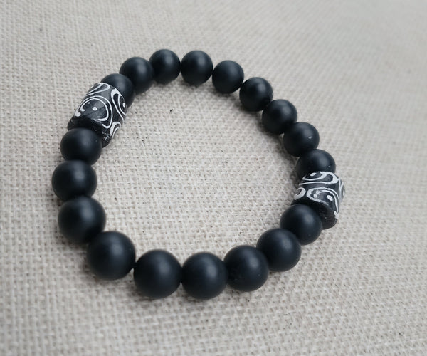 This Men Bracelet features a stylish black and white design, handcrafted with stone and glass beads. At 7.5 inches, it's the perfect size for any wrist. The stretch design allows for easy wearing and removal. A fashionable and statement piece of jewelry that will suit any occasion.