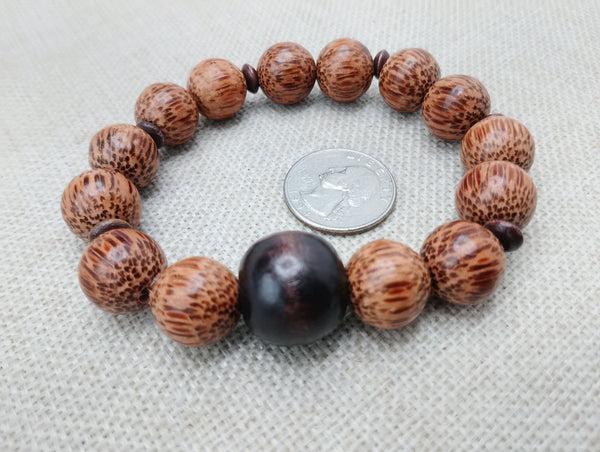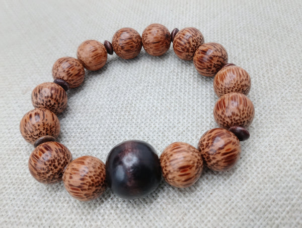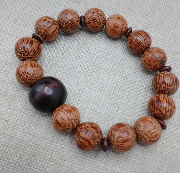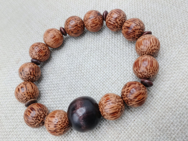 This handmade Wood Bracelet is designed for men, featuring brown wooden beads for a natural and stylish look. With a length of 8 inches, it is stretchable for a comfortable fit. Contact us with any questions.