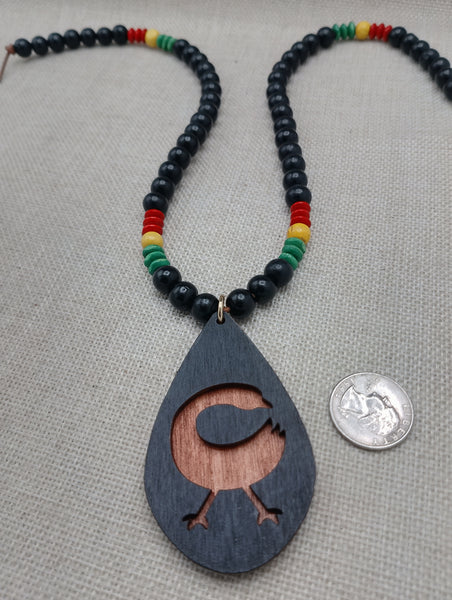 Expertly hand-crafted, this 22-inch African Adinkra Sankofa Bird Necklace is a beautiful mix of black, red, yellow, and green wooden beads. The teardrop wood pendant features the powerful Sankofa Bird, symbolizing the importance of learning from the past. Please note, this necklace may be a choking hazard for babies.