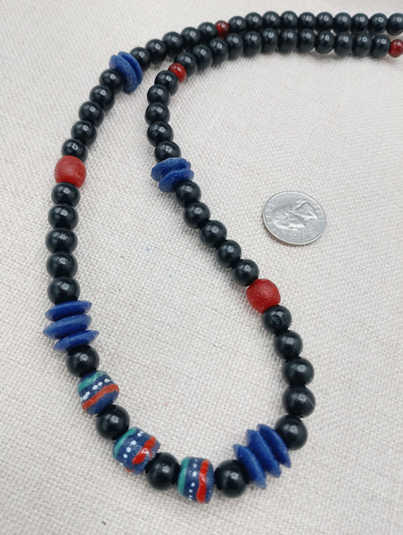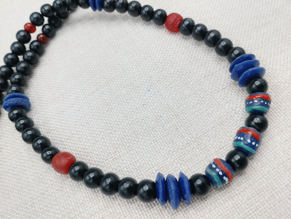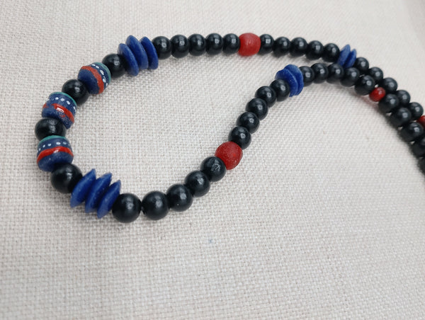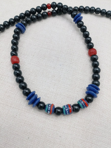 This African necklace for men is handmade with a mix of wooden, glass and handmade beads. 25 inches in length, it closes with a clasp and makes for a unique and stylish accessory. Perfect for gifting to the special man in your life.