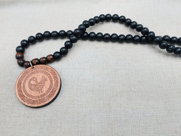 Discover the symbolic and cultural significance of the Sankofa Bird with our handmade African Adinkra necklace. Measuring 2.5 inches, the round pendant is surrounded by black and wood beads, making it a striking and unique accessory. At 26 inches long, it is a copyright piece by The Blacker the Berry. Contact us with any questions.