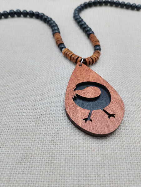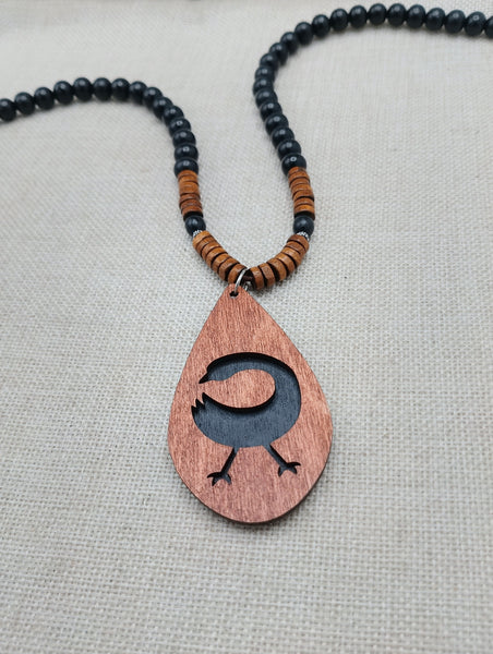 This African Sankofa Bird Necklace is not only a beautiful piece of jewelry, but also holds cultural significance as a symbol of wisdom and knowledge. Expertly crafted with a 3 inch wooden pendant coated for long wear, the necklace features brown and black wooden beads for a unique and versatile look. At 20 inches long, it is a perfect accessory for any occasion. Choking hazard for young children.
