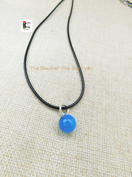 The stone is a beautiful bright blue agate The stone pendant is on a adjustable necklace. The necklace is adjustable about 16 to 18 inches long. If you have any questions please feel free to contact us at anytime.