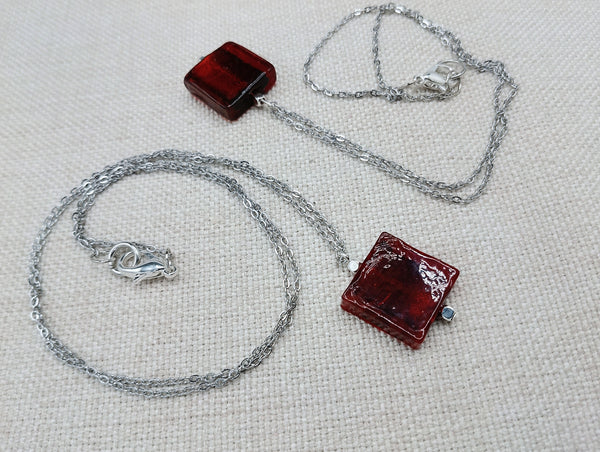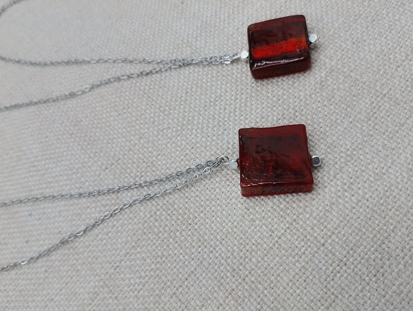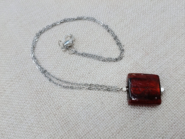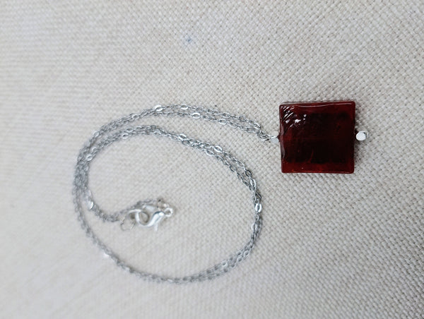 This stainless steel chain necklace which is 26 inches features a beautiful 1 inch pendant with a vibrant red amber glass center. The durable material and eye-catching design make it a versatile and stylish addition to any jewelry collection. Trust us for any questions or concerns.