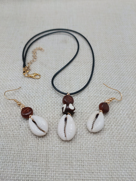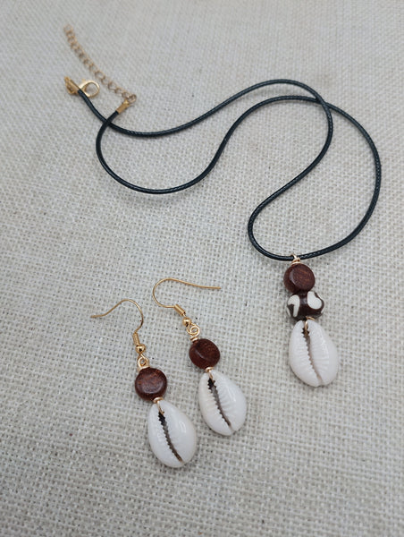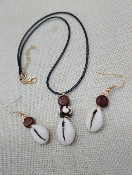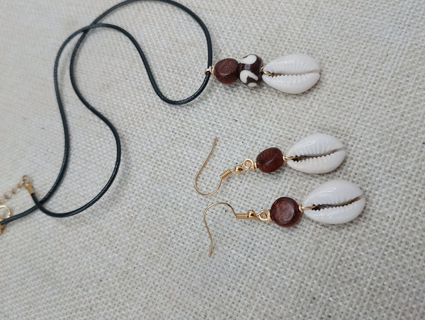 Elevate your style with our Cowrie Set Jewelry. Handmade with stunning cowrie shells and beads, the 2 inch long earrings and 16-18 inch necklace add a touch of elegance to any outfit. Perfect as a gift, this set is sure to impress. For any inquiries, please don't hesitate to reach out. *Choking hazard*