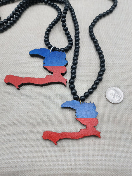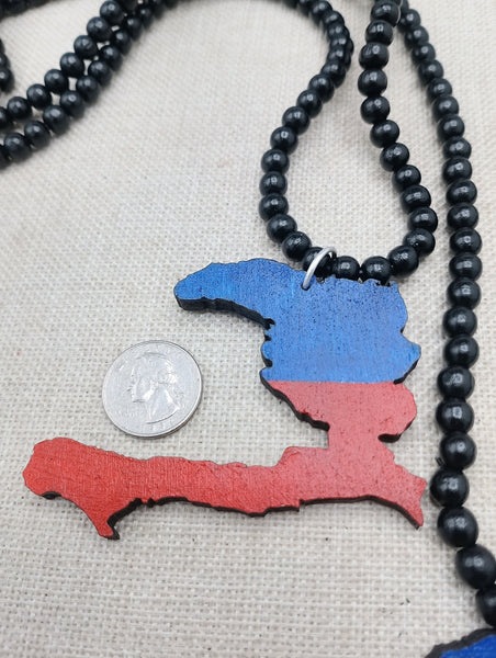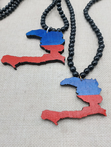 Expertly handcrafted, the Haiti Necklace Wooden Pendant is a stylish addition to any outfit. Available in three styles, each featuring a hand-painted red and blue pendant and high-quality black beads, this necklace is the perfect blend of fashion and culture. Choose from an 18 inch cord, 24 inch beaded necklace, or large pendant with black wooden beads. Get yours today and make a statement.