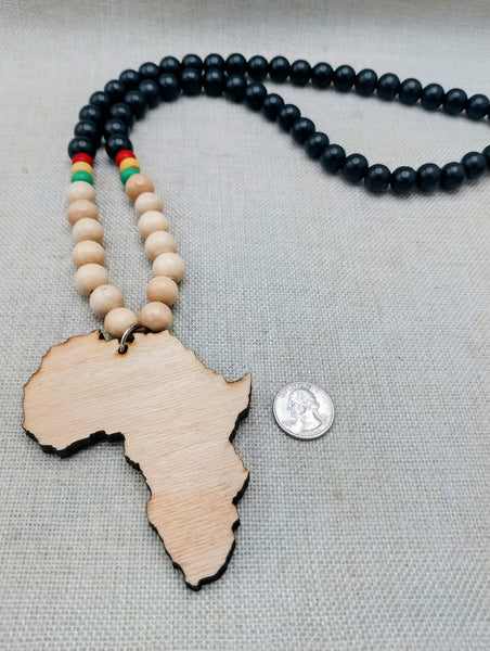 The large Africa Pendant is a thick piece which is approximately 4 x 3 inches. The necklace is 30 inches long. The piece goes over the head. It is coated for protection. If you have any questions please feel free to contact us at anytime.