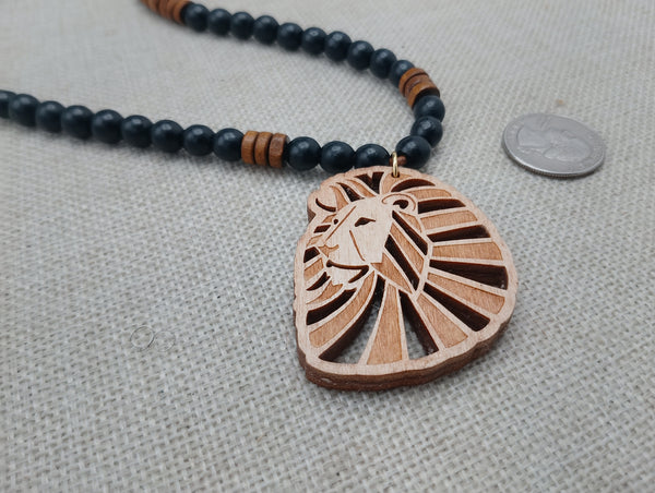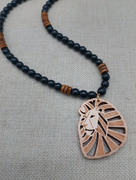 Discover the perfect balance of nature and style with our Leo the Lion Necklace. Crafted from black and brown wooden beads, this 22-inch necklace features a stunning 2 x 2 inch wood lion face pendant. With a secure clasp closure, this necklace is a unique addition to any outfit. Its protective coating ensures durability for years to come. Feel free to reach out to us with any inquiries.