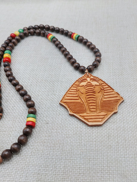 Unleash your inner king with our Men Necklace King Pharaoh Wooden Pendant Jewelry! Made with high-quality wood beads that come in brown, red, yellow, and green, and finished with a 2.5 inch pendant, this 24 inch long necklace is fit for a royal. Any questions? Contact us anytime. Elevate your style today.