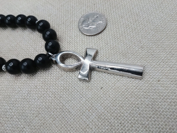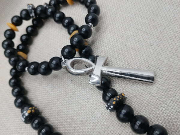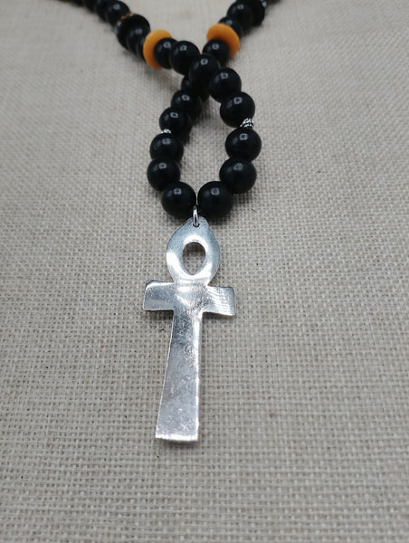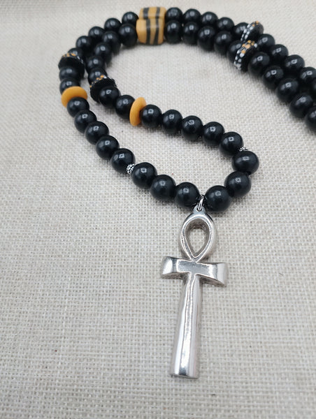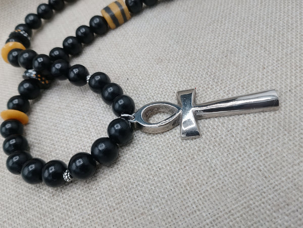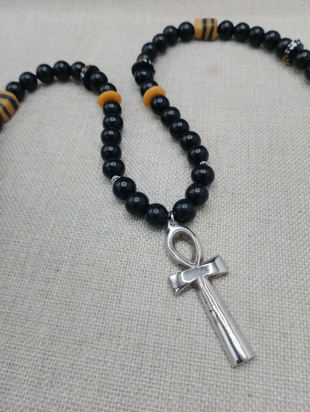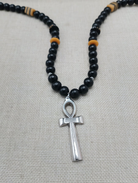 Silver Ankh Necklace Egyptian Black Yellow Beaded Ankhs Pendant Men Gift Ideas