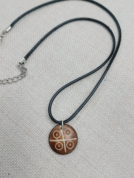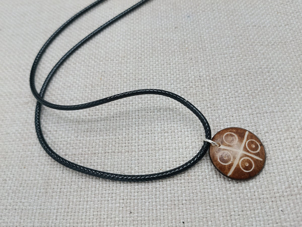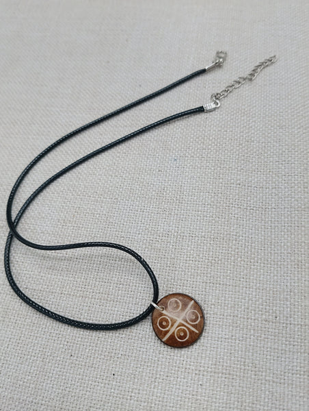 This Tribal Necklace Jewelry features an 18 inch chain with a 2 inch extension and a round carved tribal pendant in brown and silver. Elevate any outfit with this unique piece. Have questions? Contact us anytime.