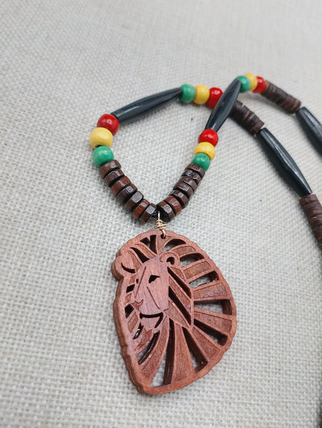 Lion Necklace Wooden Leo the Lions Jewelry Beaded Red Yellow Green Unisex