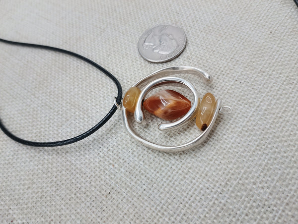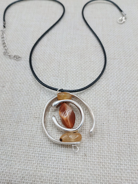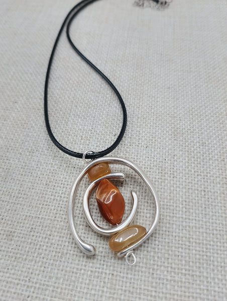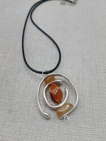 Expertly crafted, this unique 1.5 inch silver pendant showcases stunning natural stones and citrine stones. The 18 inch necklace, complete with a secure clasp, adds a touch of elegance to any outfit. Contact us anytime for more information.