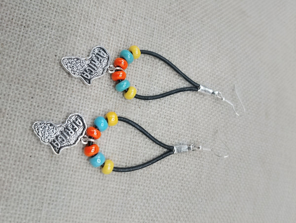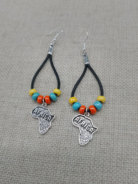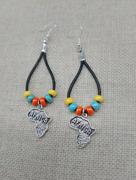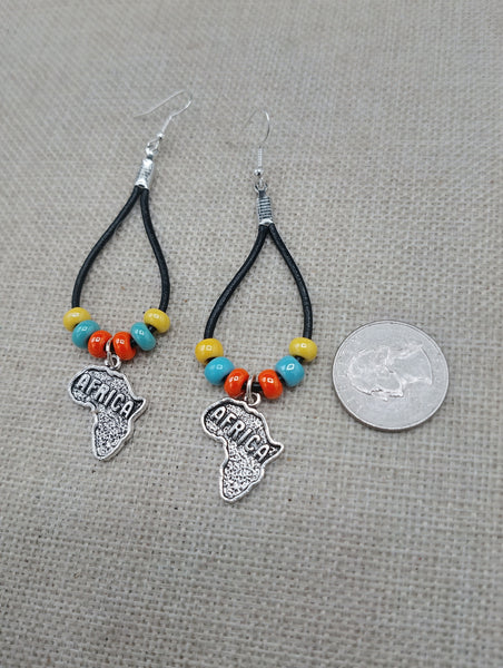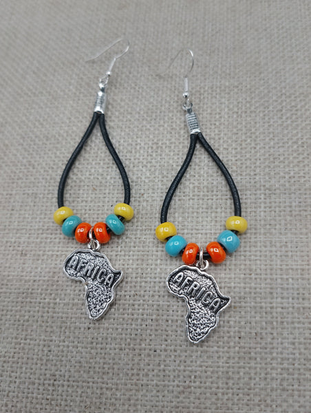 Designed for the fashion-forward individual, these Africa earrings feature a 3 inch beaded dangle with a stunning silver pendant. The vibrant glass beads in yellow, blue, and orange add a pop of color to any outfit. With back stoppers included, these earrings are both stylish and practical.