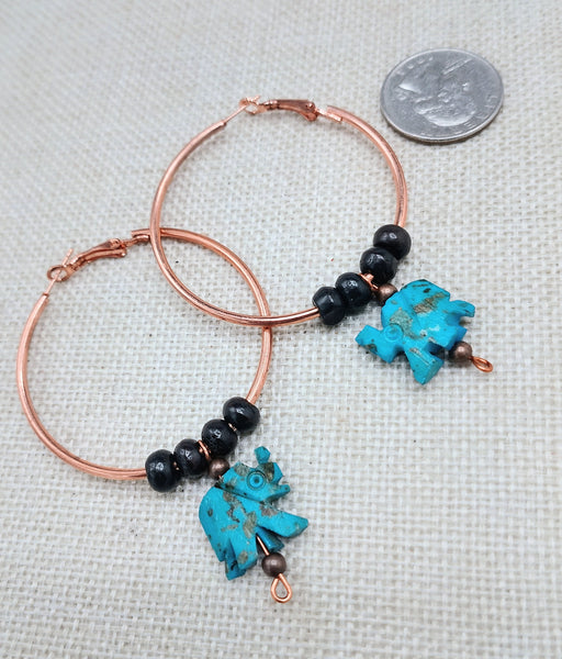 Copper Hoop Earrings Women Turquoise Elephant Beaded Ethnic Jewelry
