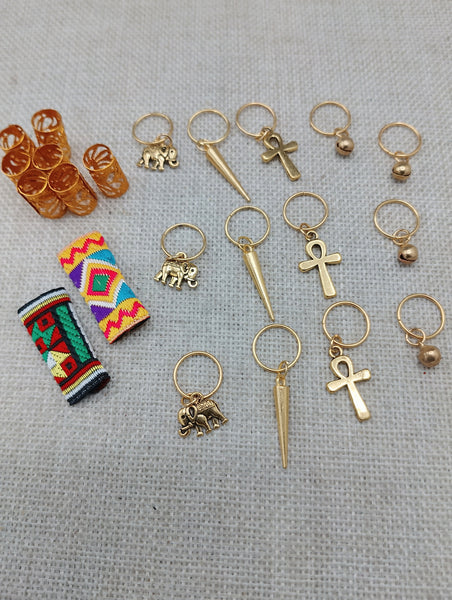 The set will include 22 pieces that can be added to braids, locs or twist. All the charms are two sided. These are easy to add to any hairstyle. If you have any questions please feel free to contact us at anytime.