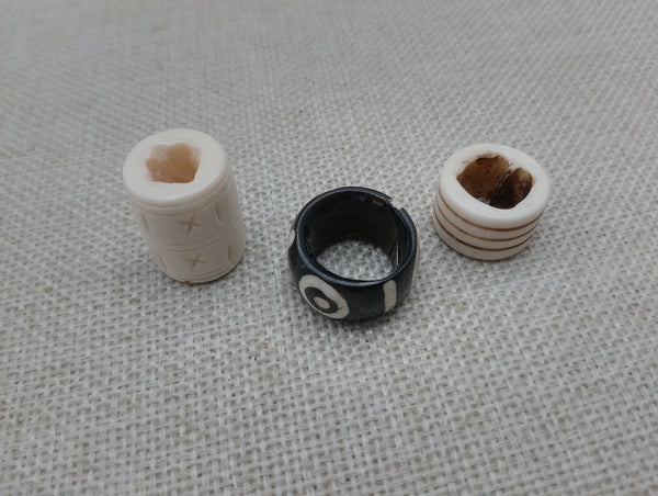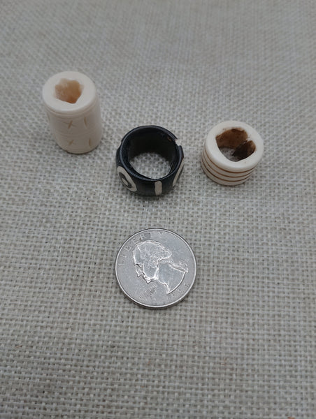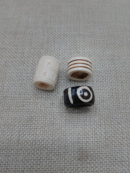 The large hole hand carved big beads hair jewelry are unique. The holes are approximately 8 -10 mm. These can be used for braids, twist or locs. The shorter ones are approximately 1/2 of an inch and .75 of an inch long.   These can be added to locs, twist or braids. If you have any questions please feel free to contact us at anytime. Not machine made, there are natural imperfections.
