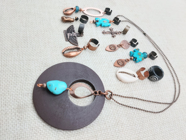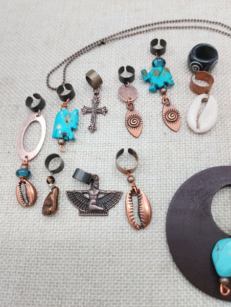 This set of 10 hair accessories is the perfect addition to any accessory collection. Made with copper accents and adorned with beads and charms, these accessories are not only stylish but also durable. The necklace, measuring at 18 inches long, adds a touch of elegance to any outfit. Upgrade your hair game with this versatile set.