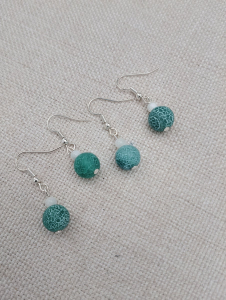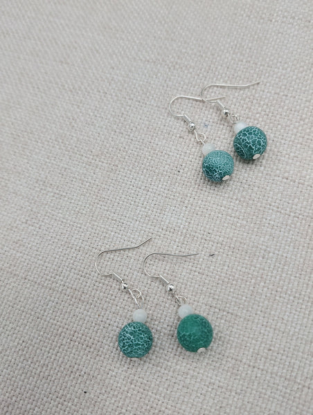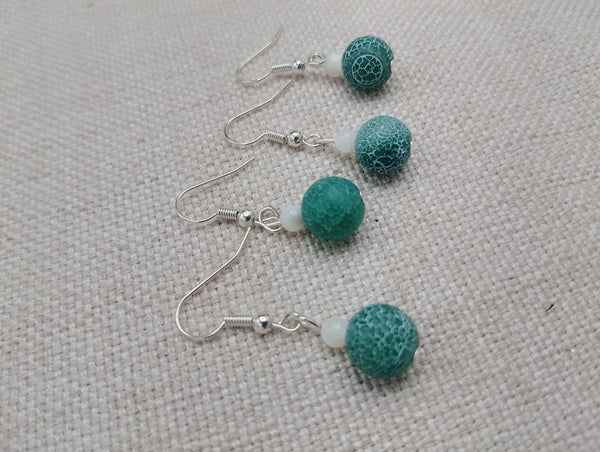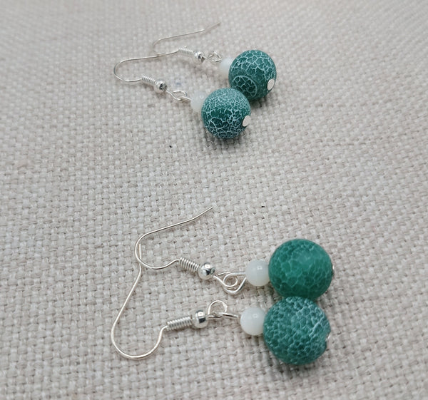 Expertly crafted, these Green White Beaded Earrings are adorned with stunning green crackle agate beads and delicate white accent beads. The silver-tone fishhook earwires add elegant movement to these handcrafted dangle earrings. Embrace the bold and unique style of these ethnic-inspired earrings.