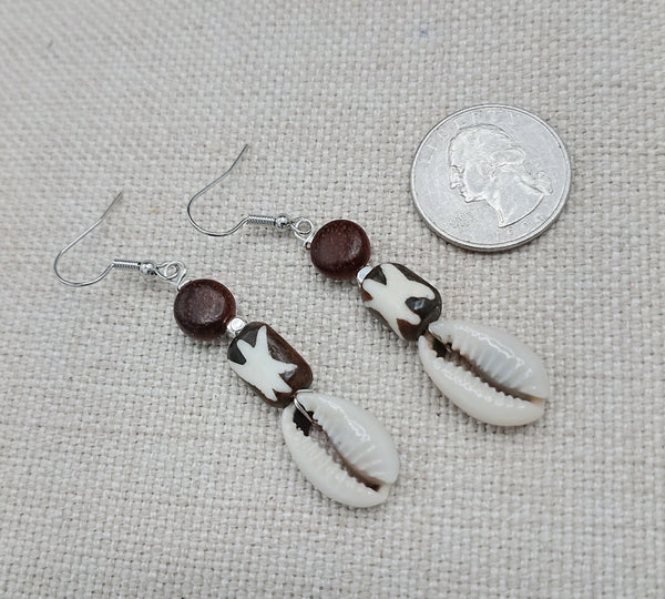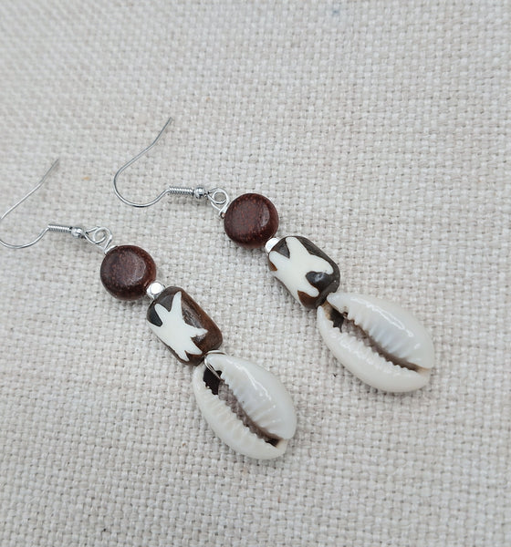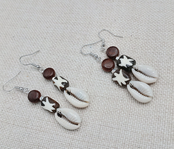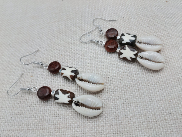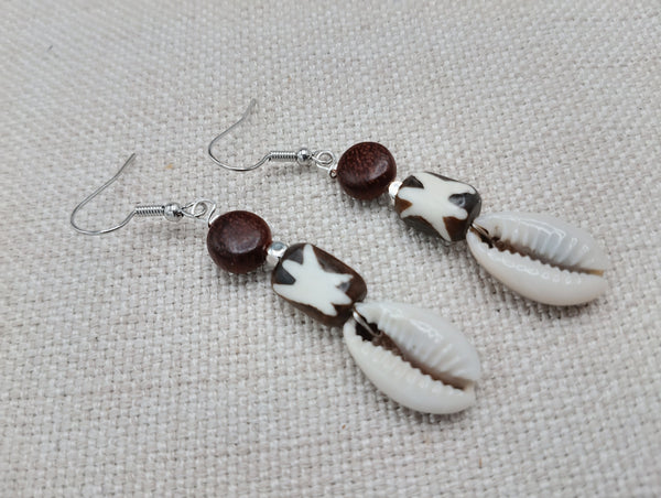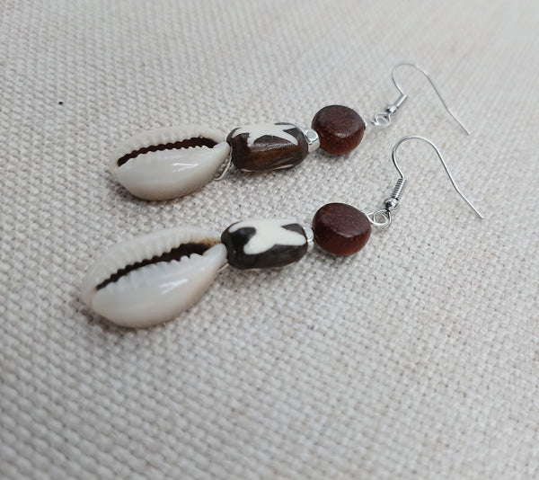 These Women Earrings are a unique blend of African, ethnic, and tribal styles. The cowrie, wood, and carved beads, accented with silver, create a lightweight and exquisite jewelry piece. For any inquiries, reach out to us anytime.