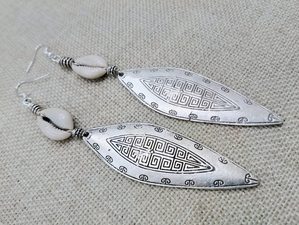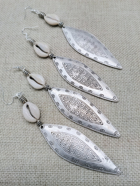 These elegant Tribal Earrings Women Silver Cowrie Jewelry are handcrafted with exquisite detail. Measuring at 5 inches long, they feature intricate silver accents and authentic cowrie shells. Crafted with sterling silver wires and back stoppers, these earrings are the perfect statement piece for any occasion. Expertly made and quality assured. Choking hazard for babies to young children. You will receive one pair with each order.