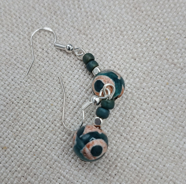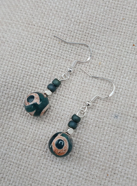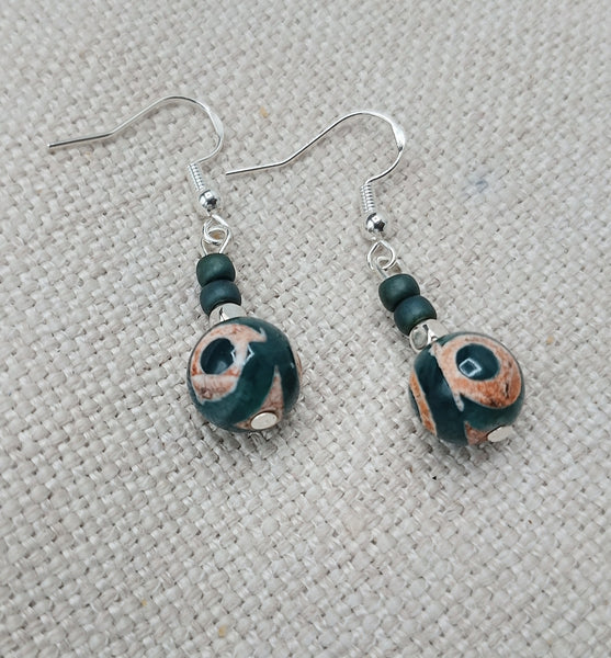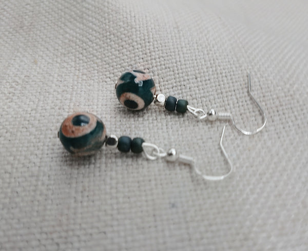 The beautiful agate stone earrings are approximately 1.5 inches long. The earrings have sterling silver wire and will come with backstoppers. They are light weight. Please keep away from young ones as they may pose a choking hazard. If you have any questions please feel free to contact us at anytime.