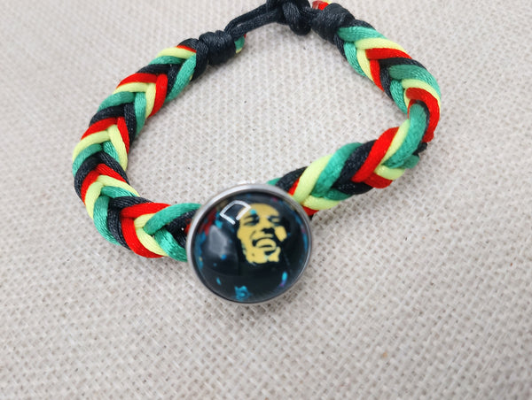 A soft corded red, yellow, green and black braided tie on bracelets. The bracelet has a snap button. It is a tie on bracelet. The bracelet is adjustable 7 to 9 inches. The coin is used in the picture for measurement only. If you have any questions please feel free to contact us at anytime.