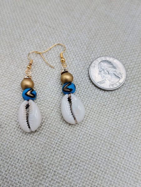 These Cowrie earrings feature a delicate drop dangle design with hand-painted wooden beads and cowrie accents. Measuring 1.5 inches in length, they add a touch of ethnic style to any outfit. Reach out to us with any inquiries about this exquisite women's jewelry.