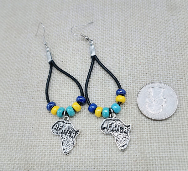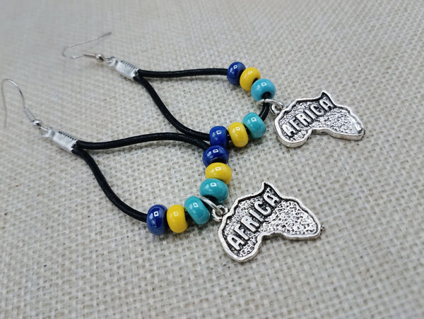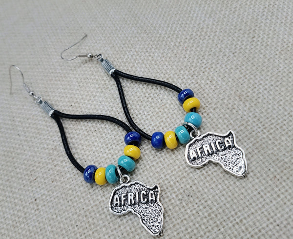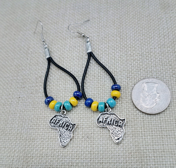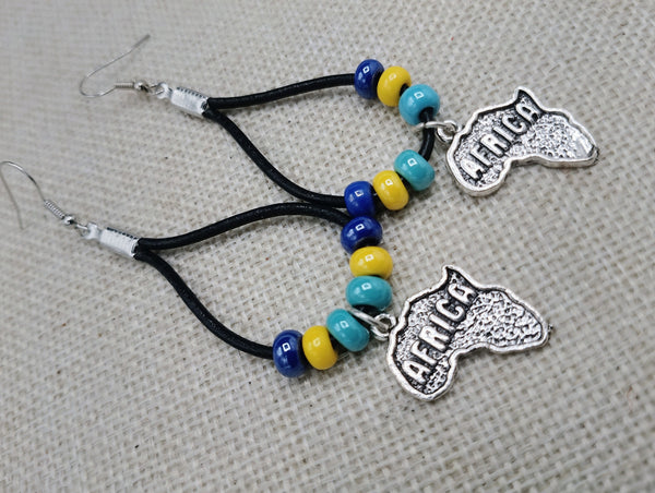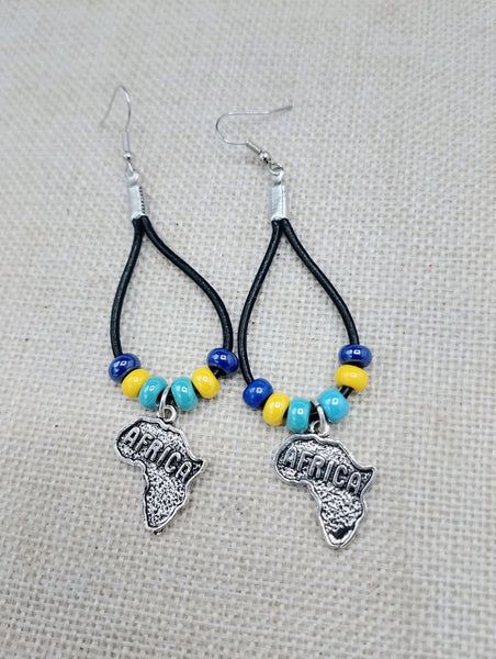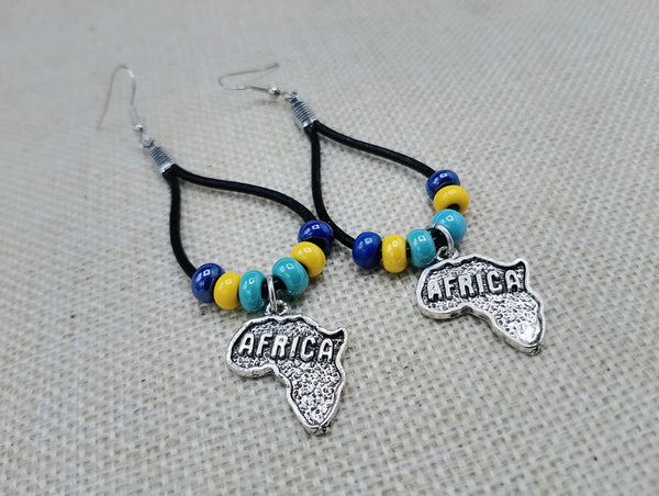 Silver Africa Earrings Dangle Blue Yellow Teal Jewelry Women