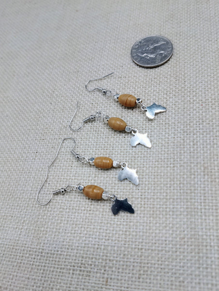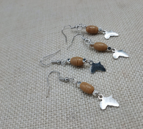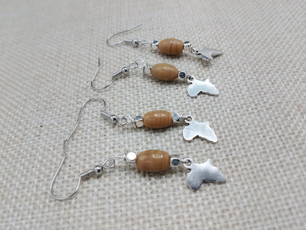 These Small African Earrings are handmade with silver wire and a glass bead pendant, measuring 1.5 inches in length. They also come with back stoppers for secure wear. Elevate your style with these unique, expertly crafted earrings and make a statement. Questions? We are always here to help.